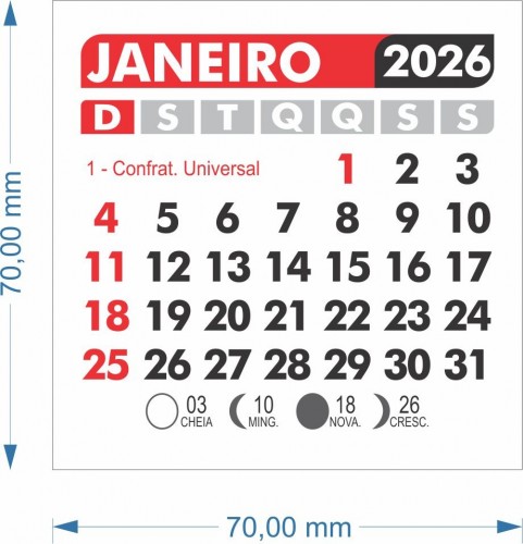 Acabamento: UV Total Frente e bloco de calendários 2025 medindo 7x4 cm.